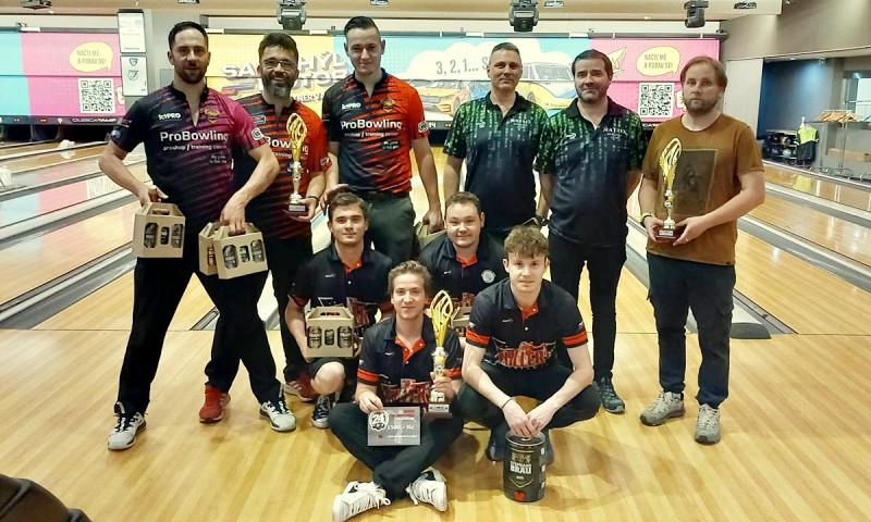 A ještě si zrekapitulujeme celkové statistiky 1. ligy o Titul. Hráči skupiny se stali Ondra Trojek (SK CNC Produkt B) s průměrem 224,90 bodu a ziskem 34 bodů a Jana Lébrová (CarCiton-LImit) s průměrem 189,18 bodu. Ondra, Jana a také druhý nejlepší muž, Matěj Vojkovský (Killer Shot – průměr 221,36 b.), si tímto vybojovali přímé postupy na MČR ABL jednotlivců. O nejvyšší nához 279 bodů se podělili hned tři hráči a to Matěj Vojkovský, David Lang (Matrix) a Ondra Kotrla (ProBowling). V týmech pak musíme vyzdvihnout náhozy ProBowlingu – 768 bodů a Killer Shotu – 732 bodů.